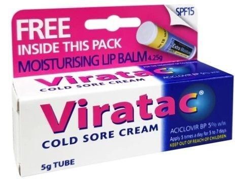 Viratac Cold Sore Cream contains the antiviral medicine acyclovir which reduces the severity and duration of cold sores.